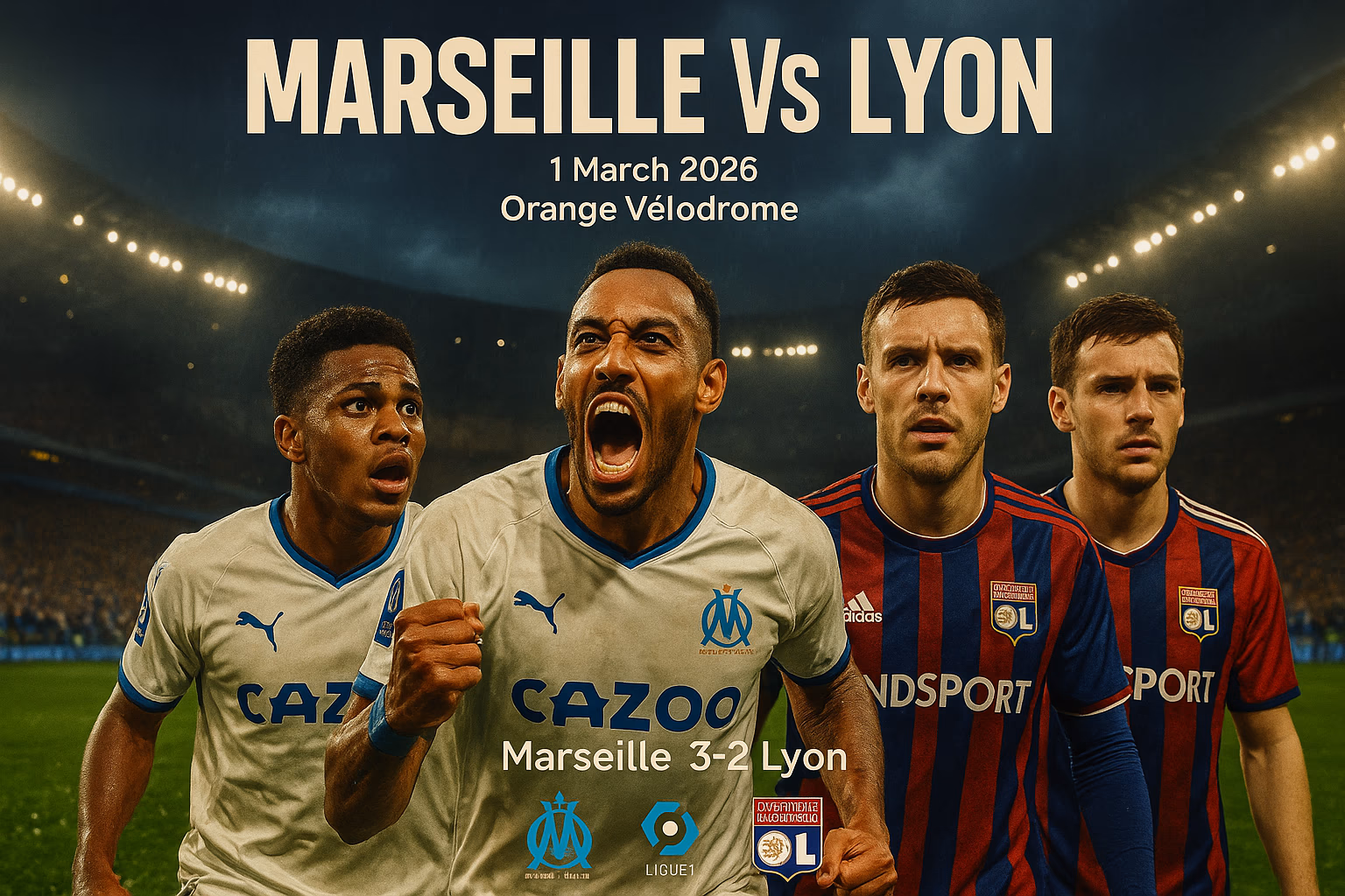 Marseille renverse Lyon 32 au Vélodrome ce dimanche 1er mars 2026, succès capital qui ramène l’OM à deux longueurs de l’OL et rouvre le déba...