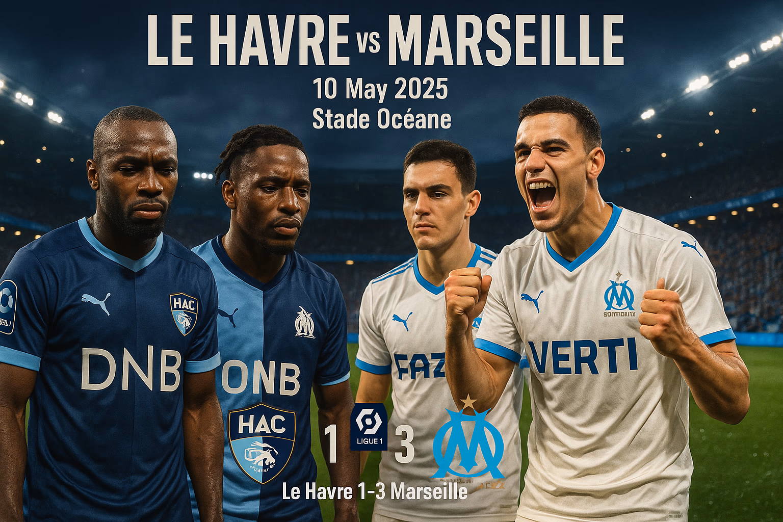 Ligue 1, 10 de mayo de 2025: Marseille se impone 3-1 en el Stade Océane y asegura su lugar de segundo