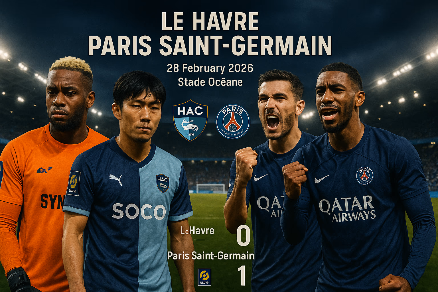 Victoire minimale, impact maximal: Paris Saint-Germain repart du Stade Océane avec un 1-0 qui le maintient en tête de la Ligue 1 et étouffe l’élan havrais.